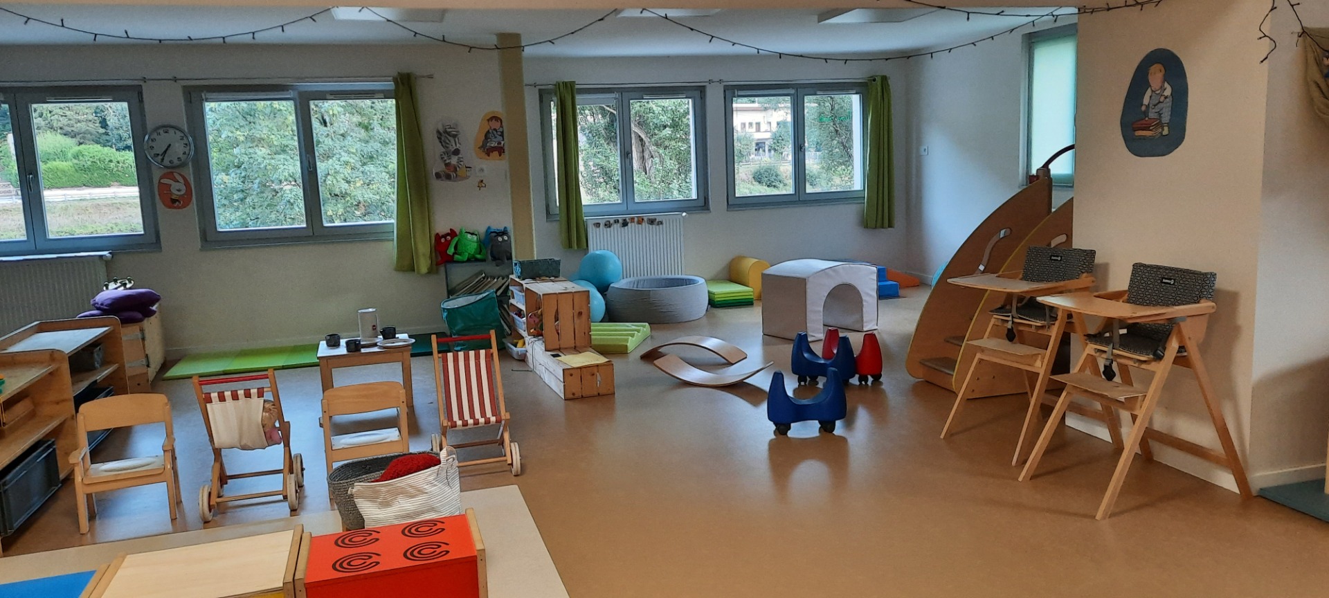 La micro-crèche est équipée d'un vaste espace de vie lumineux et tempéré de 80 m² et d'un jardin.